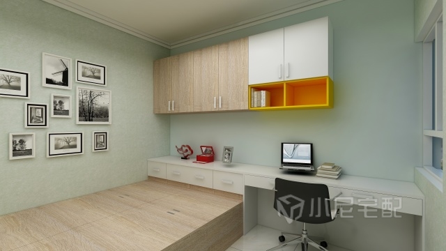 書桌加上黃色,可刺激神經(jīng)和激發(fā)能量。還能使視覺變開闊,讓人感覺房間變得寬敞。