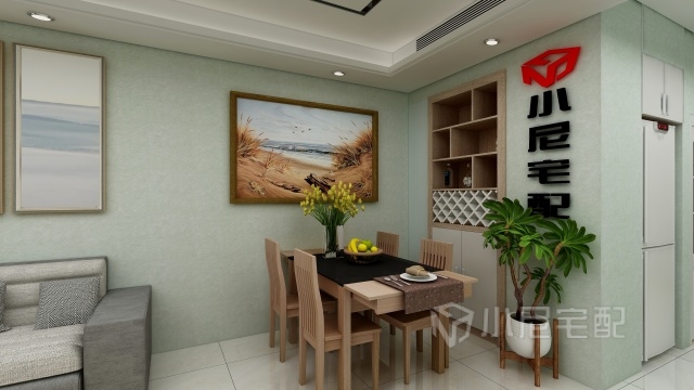 餐廳簡單實(shí)用,酒柜增加了收納空間。