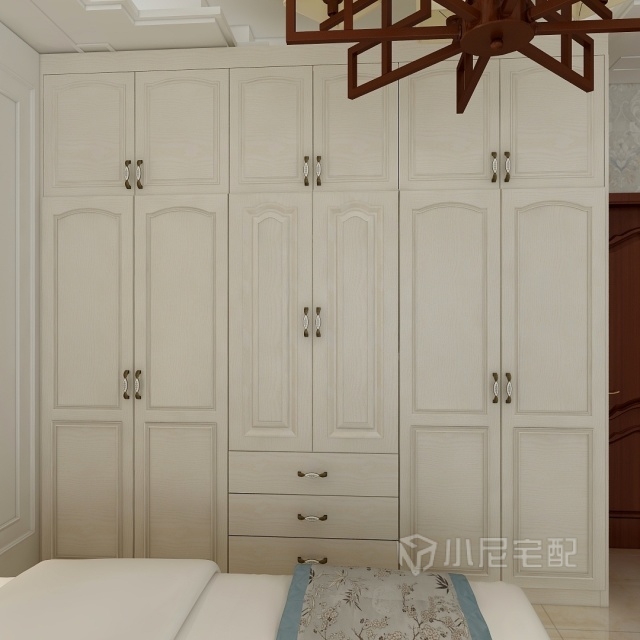 乳白色衣柜,搭配瓷芯拉手,易拉好打理,簡約但不顯單調(diào)。