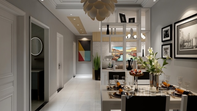 玄關采用了隔斷來劃分空間,既能合理充分利用空間,又能更好的區(qū)別客餐廳、并且不影響采光