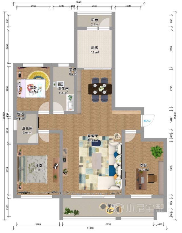 該戶型是日照市直三區(qū)128平米的戶型,業(yè)主為一家三口,崇尚自然,簡單又不失簡約的生活方式,根據(jù)業(yè)主要求,做了以下方案。