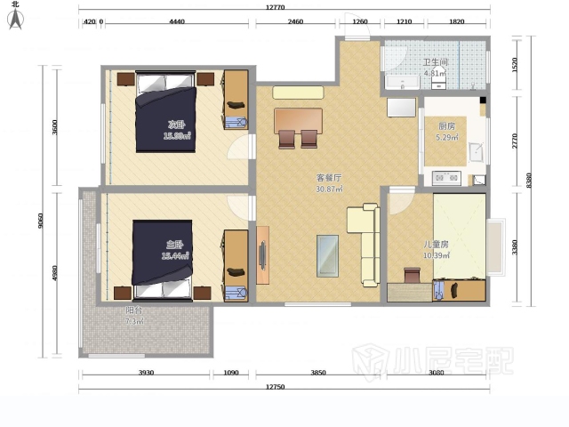 次臥室小尼宅配定制淺色衣柜,加以柔和的色調(diào)營造出輕松愜意的氣氛,歡迎客人的到來。