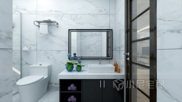 大大的深色浴室柜,在整個潔凈空間里起了畫龍點(diǎn)睛的作用。