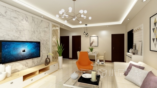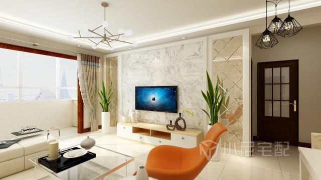 玻璃與微晶石的搭配,讓整個客廳色彩明亮又簡約時尚