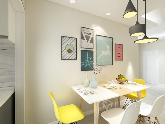 素雅的鮮花為簡約的餐桌添上一抹愉悅的生活氣息,恰到好處的壁畫為餐廳增添一種層次感,和諧而美好。在這樣的環(huán)境里用餐,稱得上是“朝飲木蘭之墜露,夕餐秋菊之落英”。