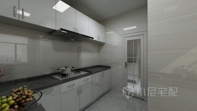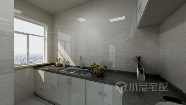 廚房暖色的墻磚搭配白烤漆櫥柜,簡(jiǎn)潔輕快