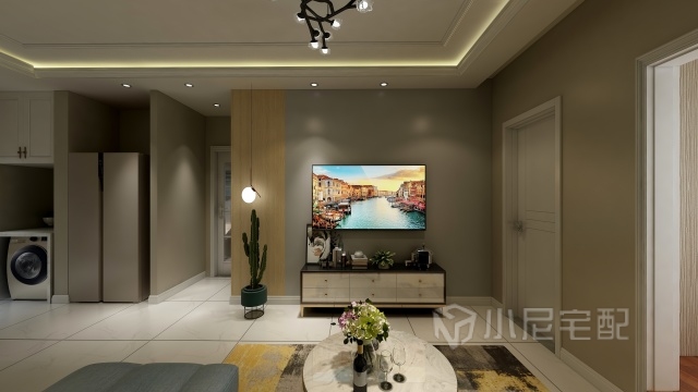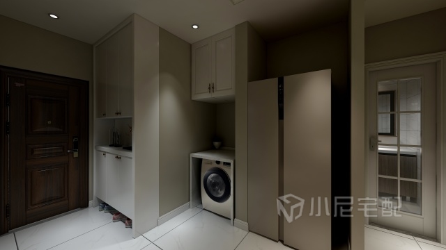門廳放置洗衣機(jī)和冰箱,多出的空間加以合理利用??臻g布局更簡(jiǎn)潔