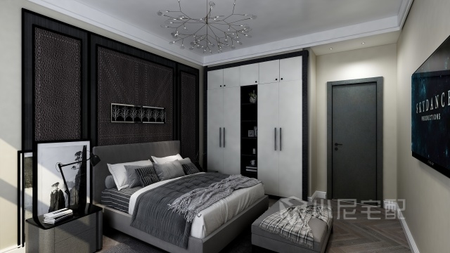 頂面采用規(guī)則的石膏板吊燈和筒燈,床頭背景都運用了壁紙等材料。從而營造一個現(xiàn)代化的簡單,舒適主臥空間??团P的設計,主要以乳膠漆,壁紙,石膏線條為只要裝飾材料。