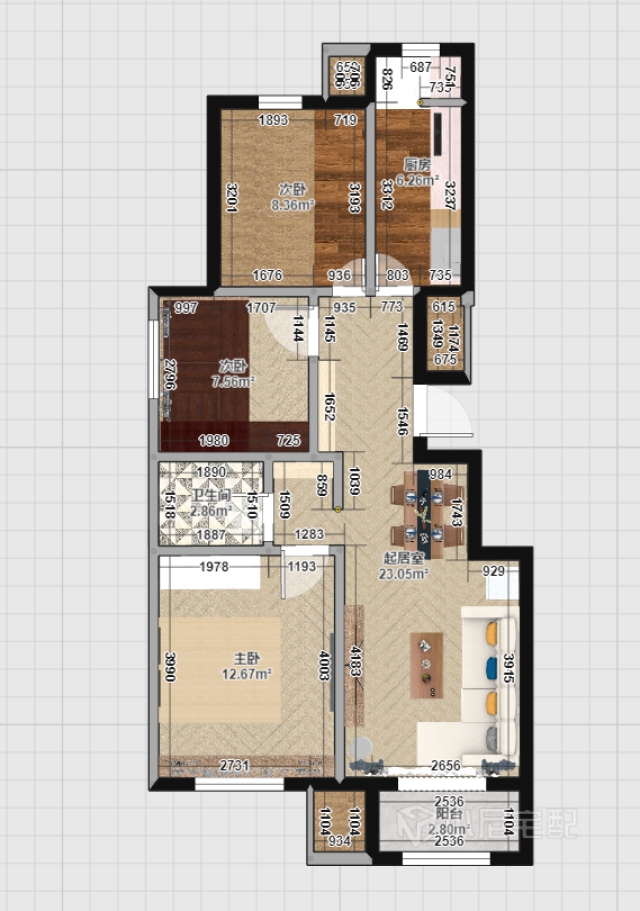 位于高層,陽(yáng)光特別明亮,總體采用偏暗色風(fēng)格