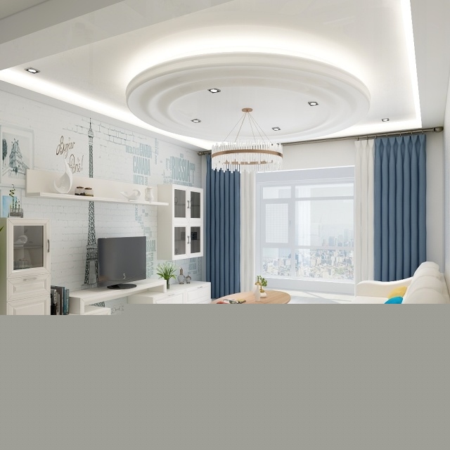 客廳白色搭配深藍色窗簾,給人一個好心情