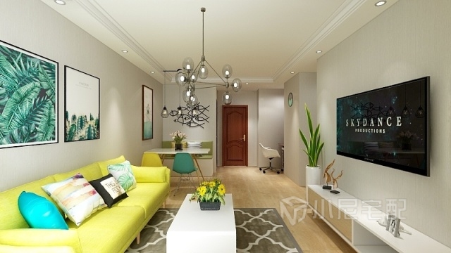 客廳整個以果綠色來提亮