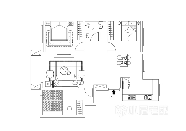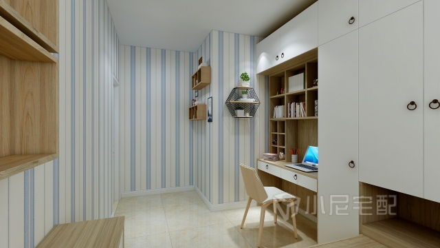 整體以白色和原木色為主,體現(xiàn)安逸、靜謐的空間