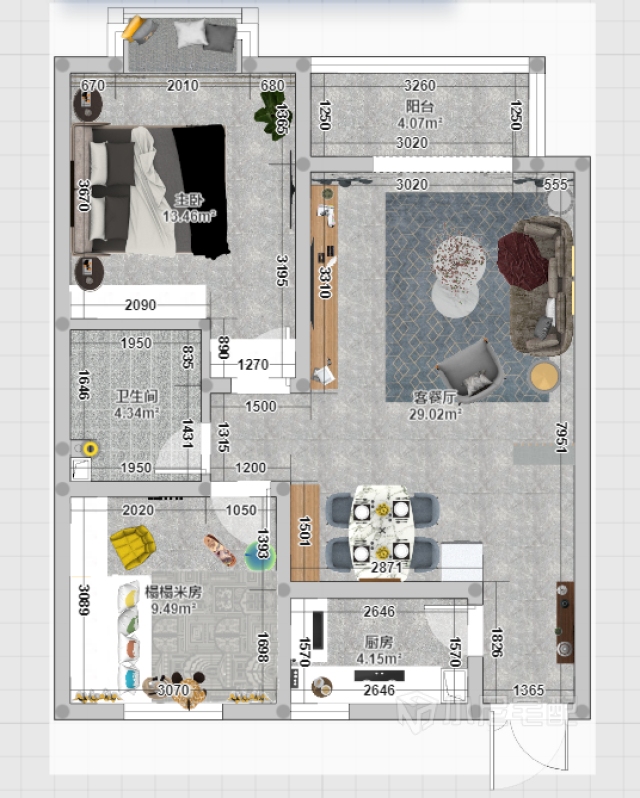 小孩房的設(shè)計(jì)中采用簡(jiǎn)潔的手法,灰色的墻面與彩色的柜子的顏色進(jìn)行了協(xié)調(diào),軟裝靈活的點(diǎn)綴出小男孩調(diào)皮活潑且?guī)в袎?mèng)想的空間。