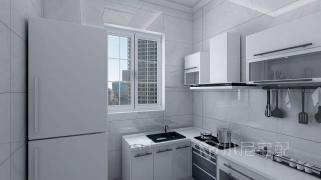現(xiàn)代簡(jiǎn)約的廚房搭配亮面的淺色墻磚讓廚房變的更加潔凈。