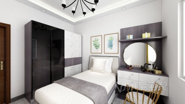 次臥 青年房衣柜功能區(qū)特別分明 也同樣配備了玻璃門扇 簡潔時(shí)尚 配備的梳妝臺(tái)就很容易看出是一個(gè)美少女的房間啦呵呵