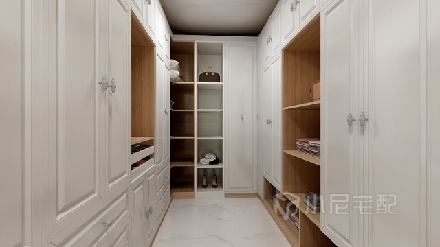門(mén)廳后面是衣帽間,因?yàn)榭臻g足夠所以設(shè)計(jì)上所有的衣物都可以在空間內(nèi)擺放,