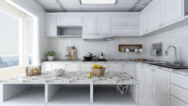 廚房女主人希望是現(xiàn)代風(fēng)格簡(jiǎn)約大方,區(qū)域限制所以設(shè)計(jì)了倒臺(tái)的位置為切菜去,方便取物