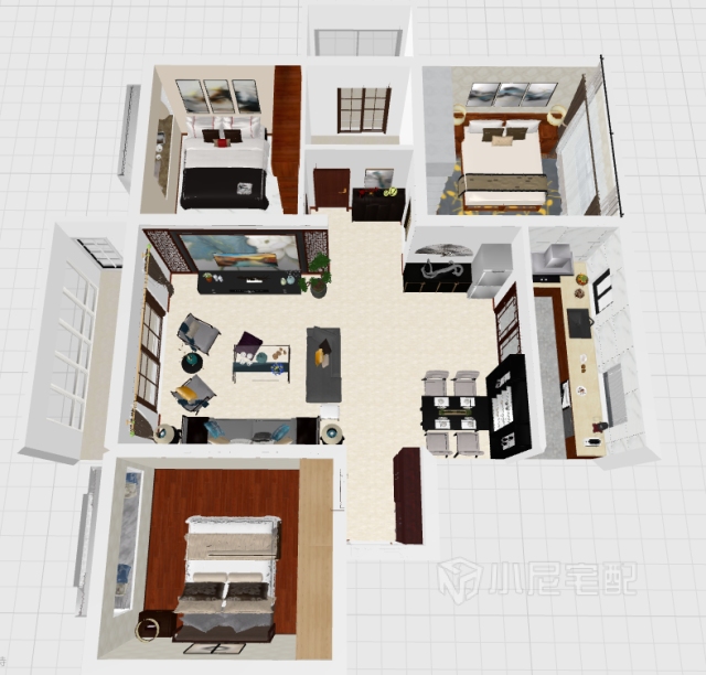這是次臥盡量還是讓他在使用紅木色的基礎上亮一些。