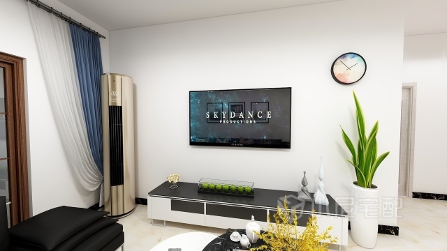 電視墻沒(méi)有太多的裝飾 簡(jiǎn)潔寬闊