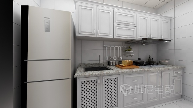廚房一字型櫥柜 面積雖小但是合理利用空間 儲(chǔ)物 做飯 各不耽誤同時(shí)也擺脫了冰箱沒(méi)地方放的難題