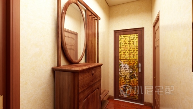 精選的家具材質(zhì)搭配上淺色的壁紙,這種設(shè)計很好的烘托出了中式風格的獨到氛圍。
