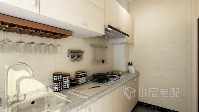 不同于其他空間,廚衛(wèi)空間使用了淺色系的現(xiàn)代風格。