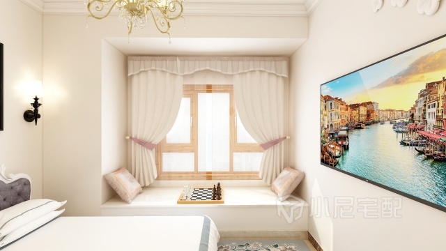 主臥室飄窗很大,充分利用飄窗做個休息區(qū)