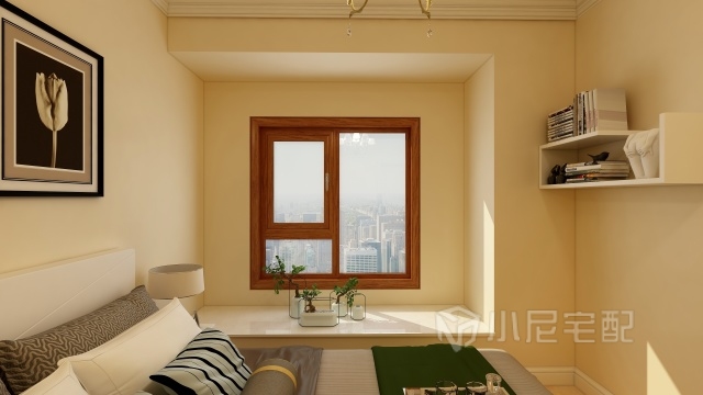 次臥室飄窗很大,充分利用飄窗做個休息區(qū)