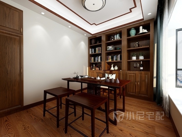 書房兼茶室 知己三兩座,茶香飄四溢。對話閑情事,偷得靜半日。