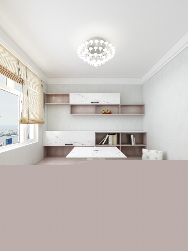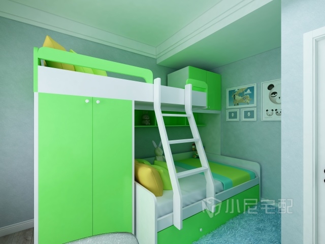 兒童房做了一個(gè)飄窗柜,飄窗柜和寫字桌連接。
