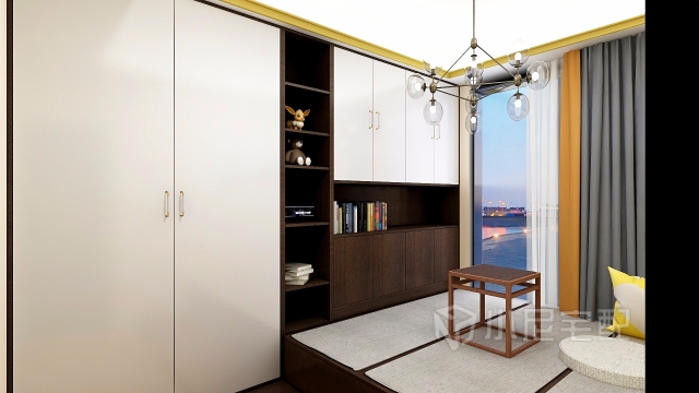 方寸之間,唯心如一 臥室定制了榻榻米代替次臥的床,并用定制大衣柜將這個(gè)空間的儲(chǔ)物功能充分開(kāi)發(fā)。既能做儲(chǔ)物空間,平時(shí)沒(méi)有客人時(shí)這里又能作為家里的小茶室使用。