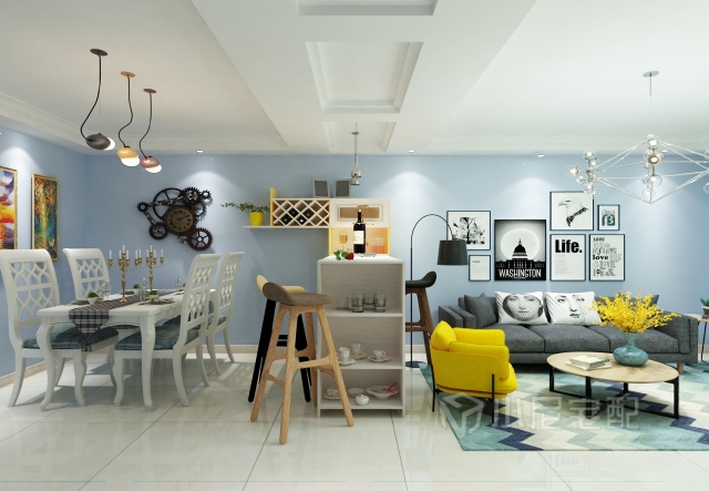 個(gè)人早起作品相當(dāng)滿意的效果,客餐廳的藍(lán)墻業(yè)主非常喜歡??筒蛷d是用3d做的燈光效果完美。