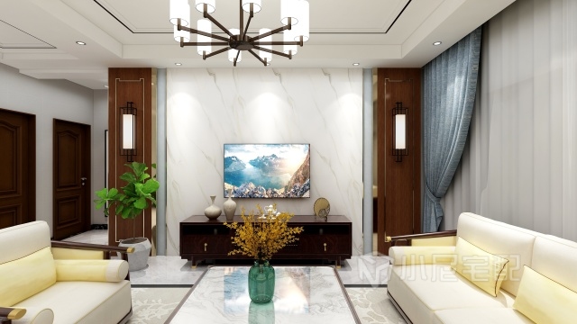 濃郁的高雅感營(yíng)造出精致的空間,明暗色調(diào)和諧共處,其中點(diǎn)綴的少許亮色是點(diǎn)睛之筆。環(huán)顧四周之時(shí),軟裝的搭配相得益彰,電視背景墻大理石的輝煌感更使整個(gè)空間大放異彩,是吸睛之處。