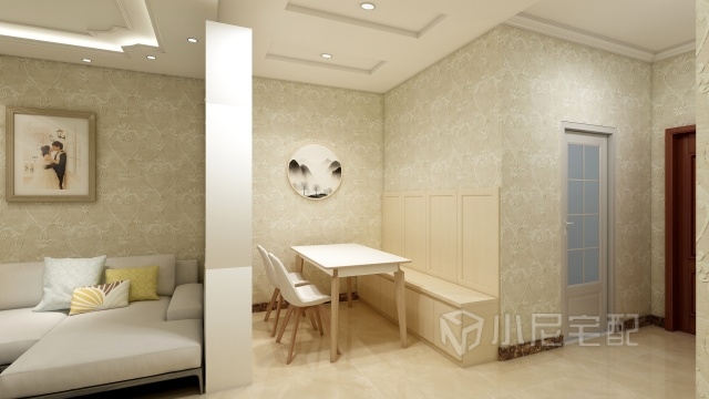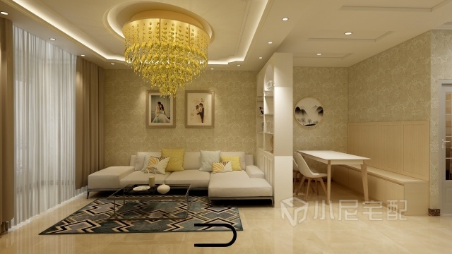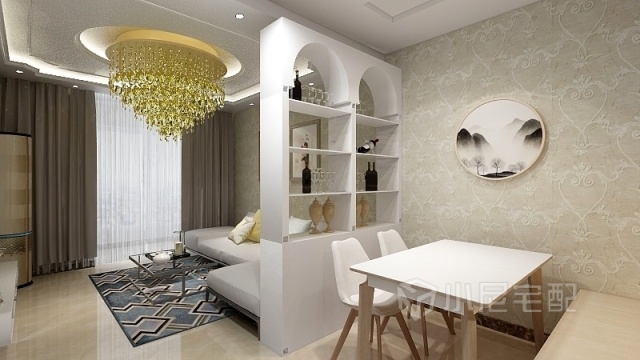 南向的兩居,客餐廳是很大的問(wèn)題,中間有酒柜做隔斷是空間得到最大利用格局分明,簡(jiǎn)約大氣