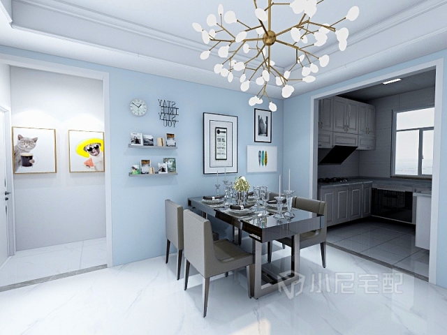 水青色的壁紙,回家到,可以洗去一天的疲勞