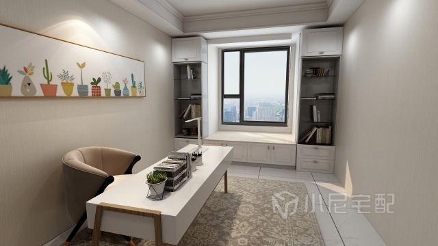 書房,飄窗設計,1.2米乘1.7米的大飄窗,夏天在上面曬太陽完全沒有問題。
