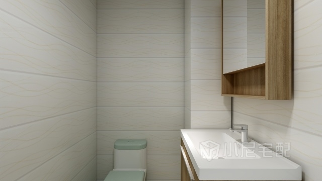 衛(wèi)生間整體干凈整潔原木色洗漱臺增加色彩省得單調(diào)