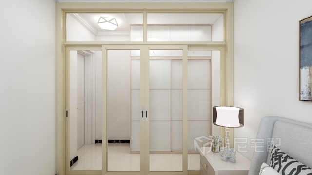 主臥為了照顧老人從中間安裝推拉門隔斷保暖性更好