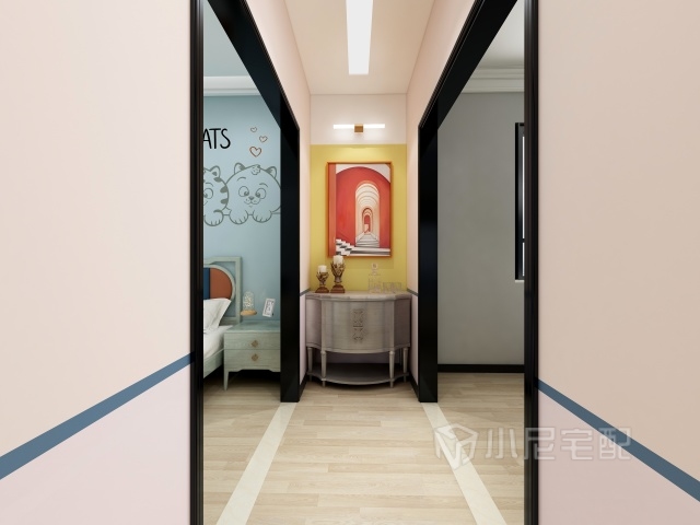 黑色的門套及,黃色的墻面暖暖的燈光,好不溫馨