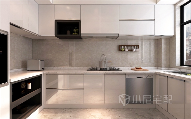 白色烤漆自帶拉手的櫥柜,簡(jiǎn)單好打理