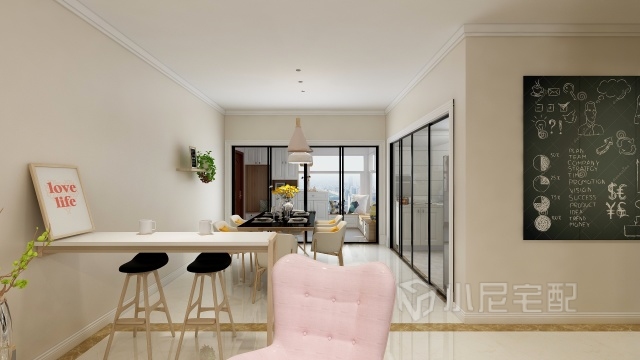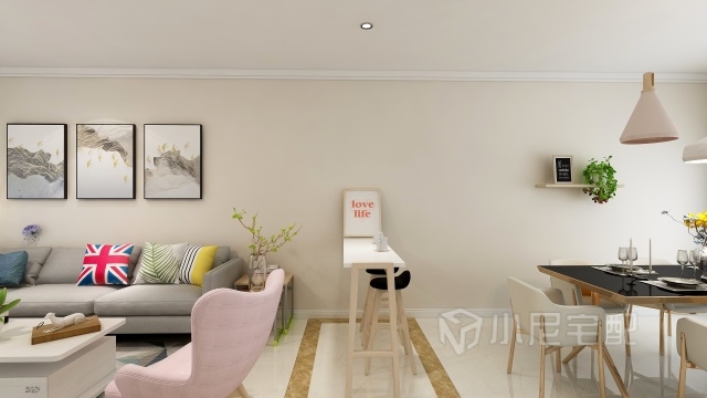客廳餐廳中間加個吧臺,合理的分割了空間阻隔了視線。