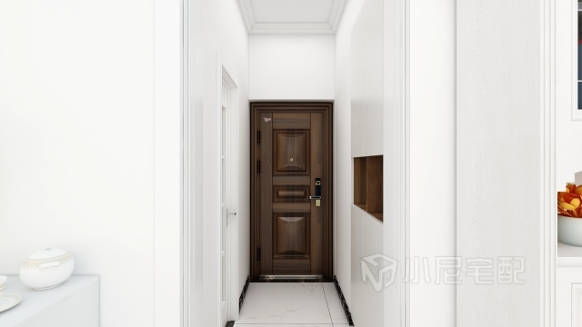 進門處鞋柜為原次臥門,現(xiàn)改為內(nèi)嵌鞋柜,解決沒有鞋柜的問題