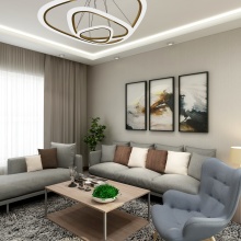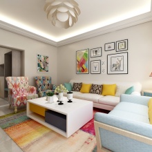 此方案為現(xiàn)代簡(jiǎn)約! 設(shè)計(jì)里有冷靜的灰色、 有柔和的暖色、還 有大膽的顏色跳躍 。生活不是一塵不變的, 但是 一天過(guò)去褪去工作的緊張感、 生活的壓力感 ,回到家是恬靜、闊以的!
