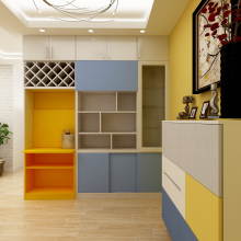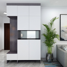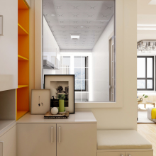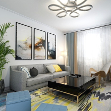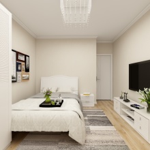 方案整體風格趨向于簡約風格,戶型采光較好,大面積灰色并不會另空間壓抑,配合白色踢腳線、木地板和原木色家具,使整個空間能更好的展現(xiàn);原是三室一廳兩衛(wèi)的戶型,為滿足業(yè)主對于衣帽間的需要,將主臥內的衛(wèi)生間改造成衣帽間;原戶型內過道很寬,占用了很大的空間,后將隔墻拆改,占用一部分衣帽間的空間,使過道一側留出內嵌展示柜的深度,弱化3米多長的過道。