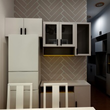整體風(fēng)格以時尚簡約為主,由于此戶型面積不大,所以層高3300的房子柜子直接做到頂,客廳既具備了客餐廳的功能也具備了辦公的功能,更具備了休息的功能,所謂把空間用到了極致