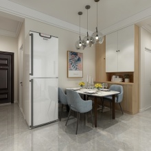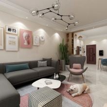 業(yè)主喜歡北歐風格,喜歡生活空間帶點色彩,設計師為其定下整體以暖白色主基調(diào)的北歐小清新,配以木飾面家具,軟裝增加粉色調(diào)色,增加空間的活潑氣氛,充分體現(xiàn)女主人對新家愛的點點滴滴。當每次推開入戶門,看到映入眼前的自然溫馨,就會感受到抹去了疲憊的放松。對,家就要這樣的自然表現(xiàn),不需要刻意的復雜堆砌,希望永遠留出最初的夢想,家。