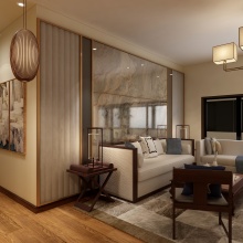 市區(qū)最貴的小區(qū)之一,頂層海景房,業(yè)主要求設(shè)計(jì)感強(qiáng),多用大理石和紅木。整套裝下來十分奢侈,