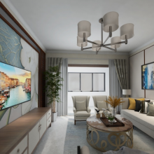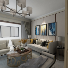 個(gè)人早起作品相當(dāng)滿意的效果,客餐廳的藍(lán)墻業(yè)主非常喜歡??筒蛷d是用3d做的燈光效果完美。