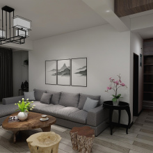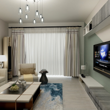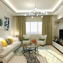 本戶(hù)業(yè)主是個(gè)三口之家,45歲。女兒21歲。一家人比較喜歡沉穩(wěn)的裝修風(fēng)格,女主喜歡書(shū)法,整個(gè)效果是以古典元素為中心,考慮客戶(hù)年齡,軟飾上我選用了米色和各種藍(lán)色呼應(yīng)。活躍了深顏色帶來(lái)的沉重感。