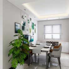 此戶型以簡約歐式風(fēng)格為主題,以象牙白為主色調(diào),淺色為主,深色為輔,營造了一種清新而內(nèi)斂的氛圍